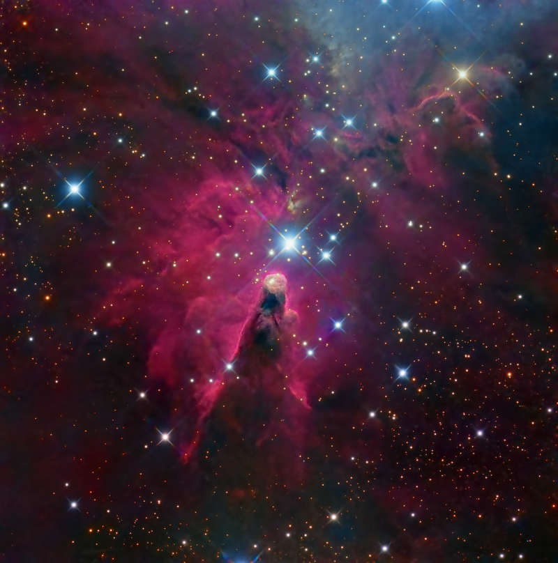 La Nebulosa Cono fa parte della nebulosità che circonda l'ammasso dell'Albero di Natale o NGC 2264.