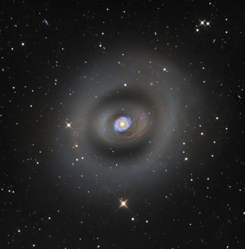 Messier 94 (also known as NGC 4736) is a spiral galaxy in the mid-northern constellation Canes Venatici. It was discovered by Pierre Méchain in 1781,[6] and catalogued by Charles Messier two days later. Although some references describe M94 as a barred spiral galaxy, the "bar" structure appears to be more oval-shaped.[7] The galaxy has two ring structures.[5] More info WIKI