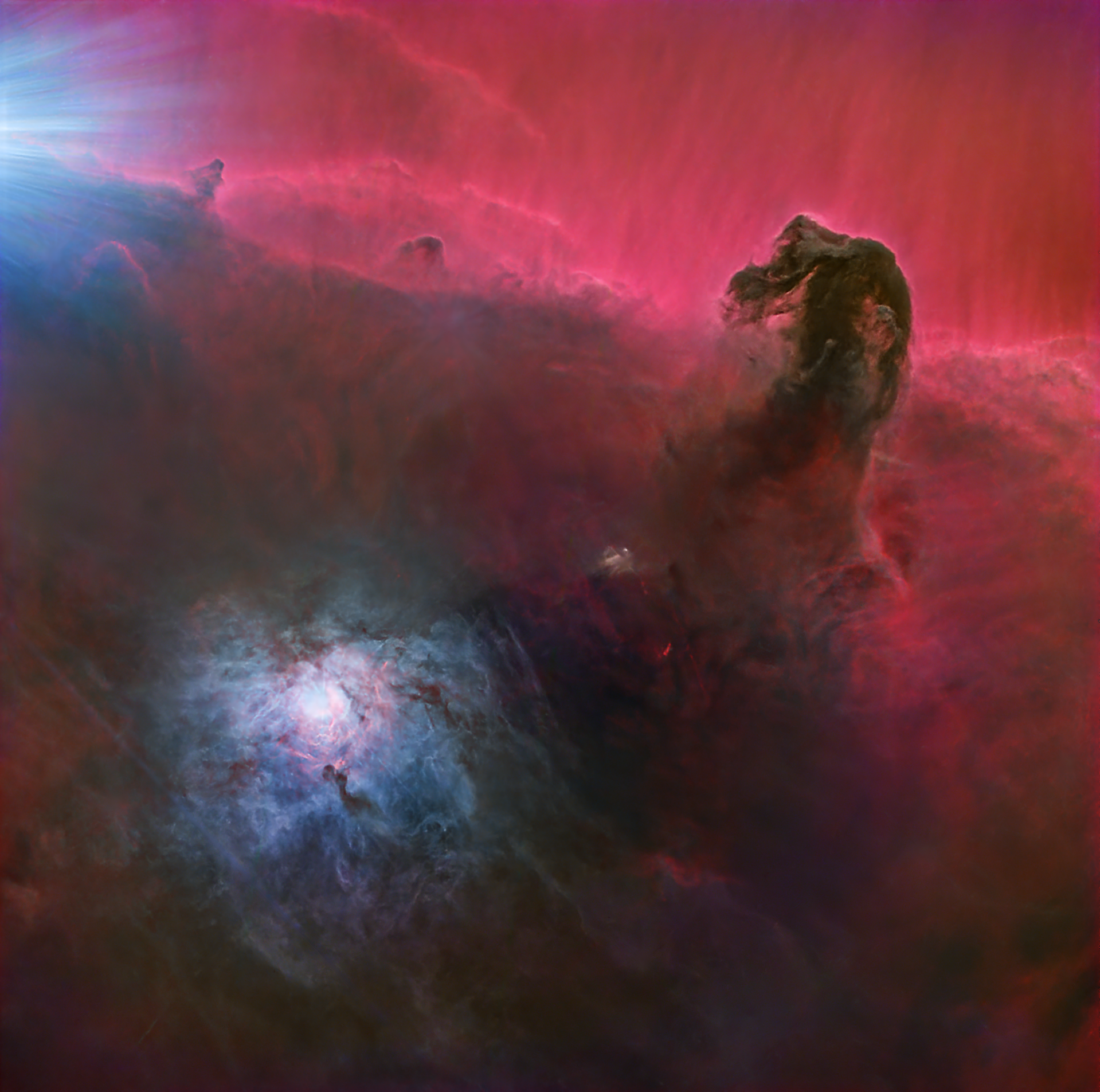In basso a sinistra troviamo NGC 2023 , una piccola nebulosa che brilla per riflessione della luce prodotta dalla stella HD 37903, di classe spettrale B5, da cui prende il colore marcatamente azzurrognolo; si tratta della parte illuminata più meridionale di Orion B.