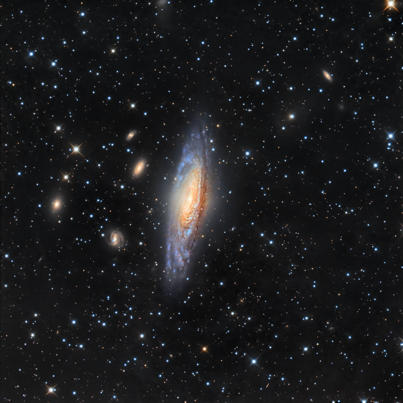 NGC 7331 (also known as C 30) is a spiral galaxy visible in the constellation Pegasus. Note the faint background nebulosity, the IFN. The term was coined by Steve Mandel who defines it as "high galactic latitude nebulae that are illuminated not by a single star (as are most nebulae in the plane of the Galaxy) but by the energy from the integrated flow of all stars in the Milky Way.” As a result, these nebulae are incredibly faint and require hours of exposure to capture. These nebulosities, a major component of the interstellar medium, are composed of particles of dust, hydrogen, carbon monoxide and other elements." [1] They are especially prominent in the direction of the north and south celestial poles. The vast nebula near the south celestial pole is MW9, commonly known as the Southern Celestial Serpent.[2]